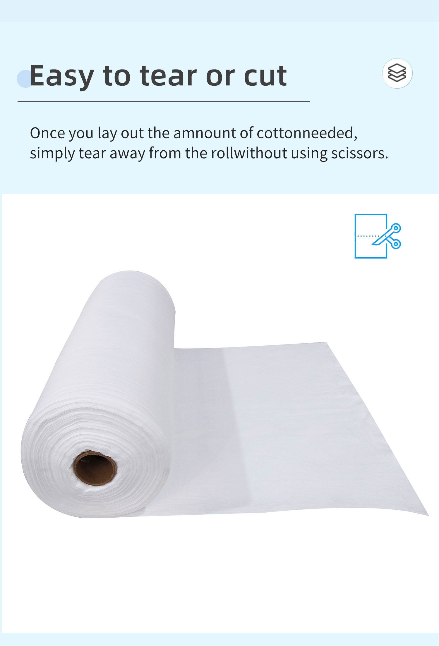 Spunlace cotton roll is moisture-proof, breathable, flexible, light, non-combustion-supporting, easy to decompose, non-toxic and non-irritating, rich in color, low in price and recyclable. Suitable for a variety of applications, including wound care, facial cleaning and makeup removal.